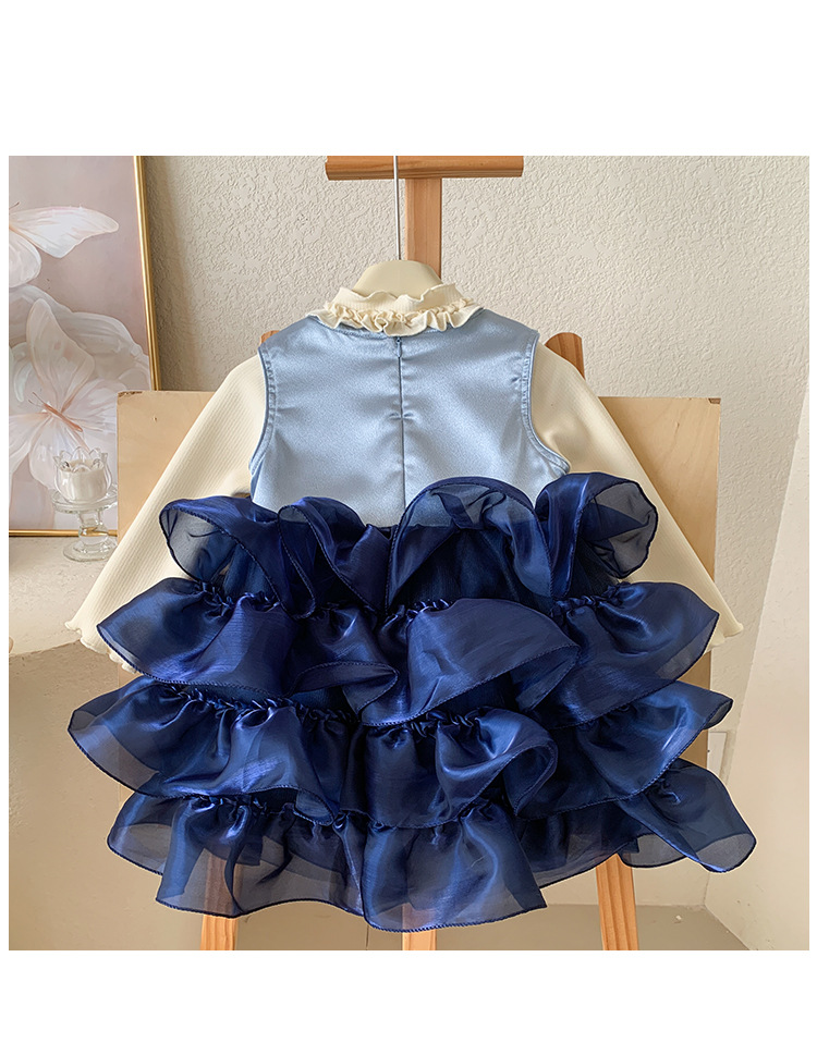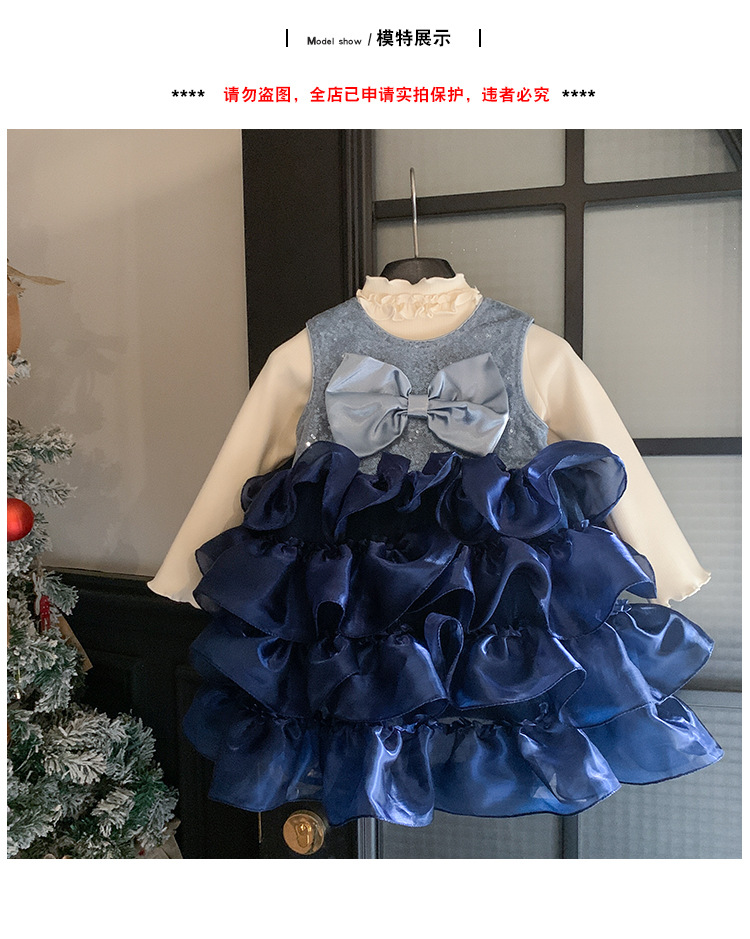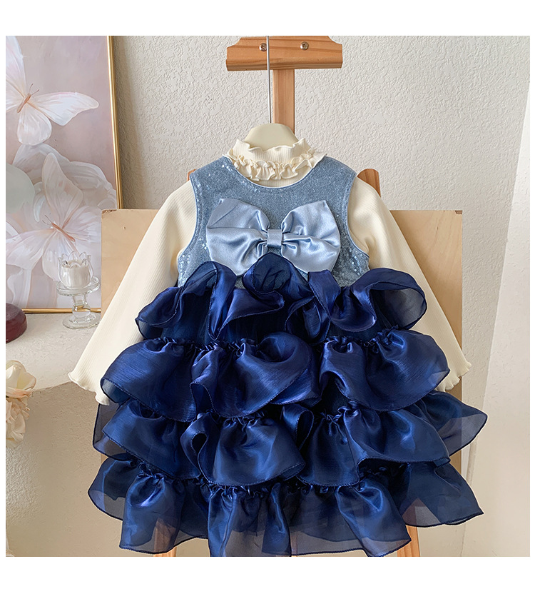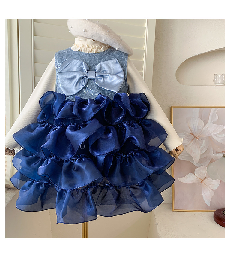 Girls' Winter Clothing 2025 Girls' Sleeveless Fleece Cake Fluffy Dress Bottom Fleece Top Two-piece Set