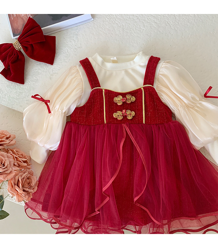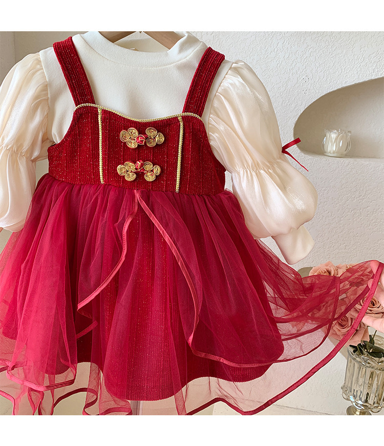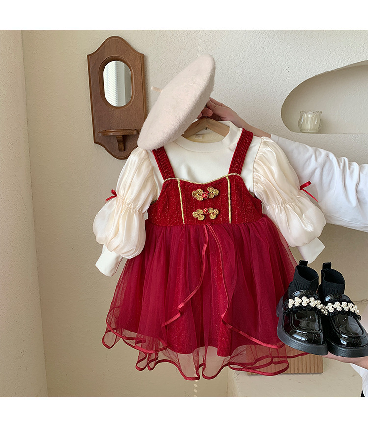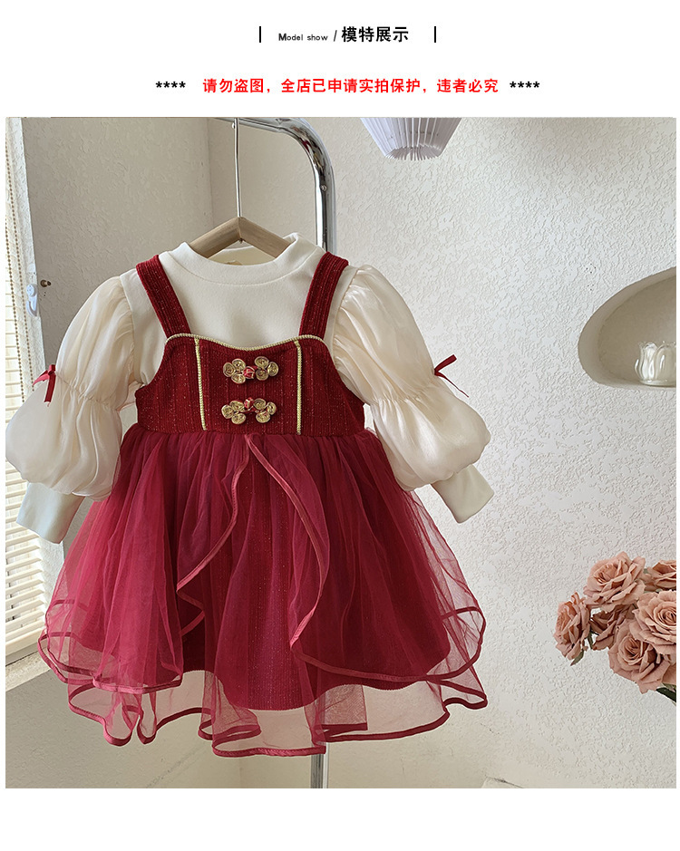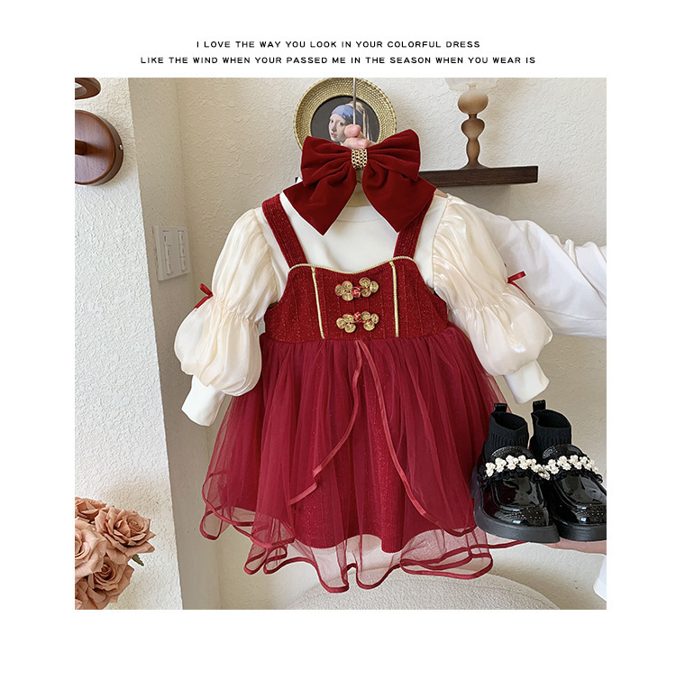 Girls' suit skirt winter 2025 new foreign style baby red New Year's dress velvet thickened princess skirt two-piece set