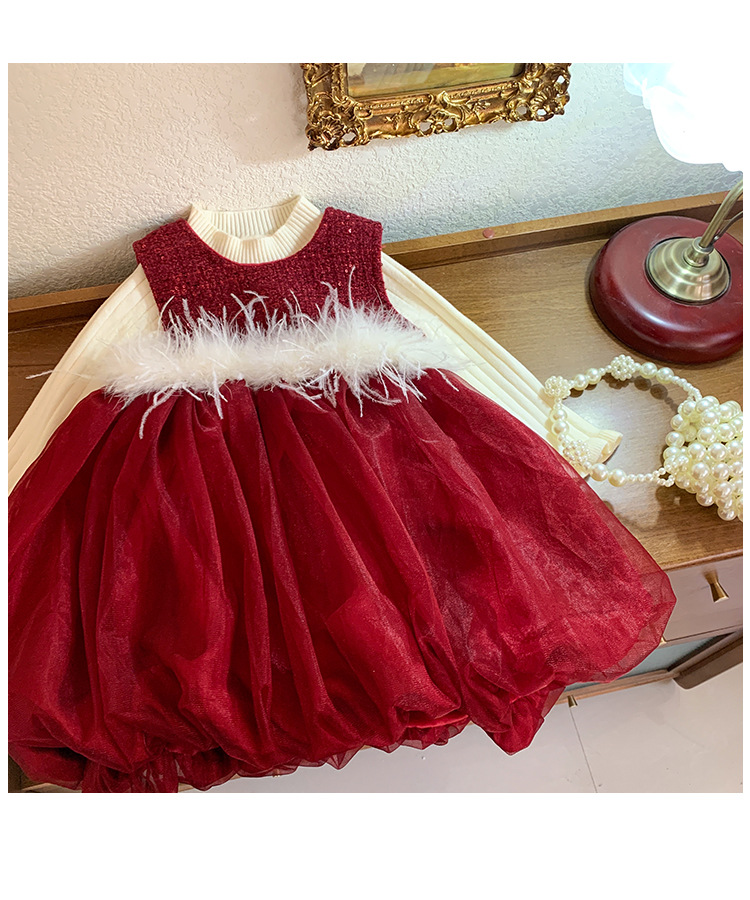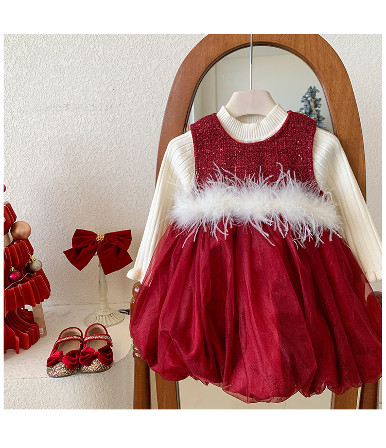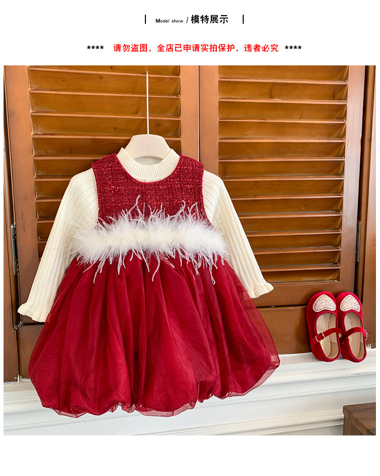 Girls' small fragrant style set, winter clothing, foreign style velvet vest, splicing tutu skirt, children's knitted top, two-piece set