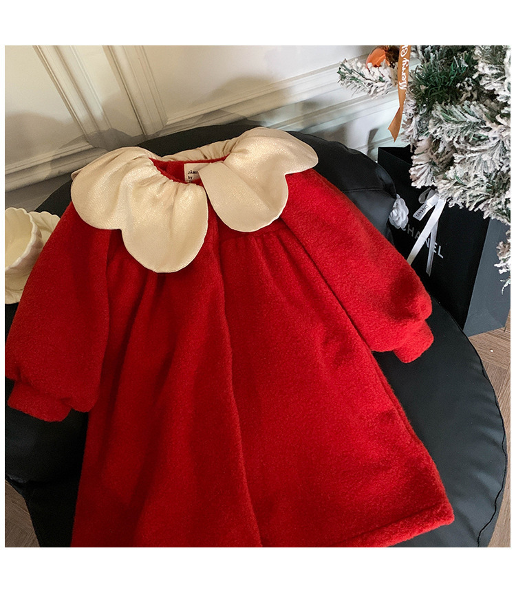 Girls' New Year's greetings red woolen jacket 2025 autumn and winter children's gas doll shirt collar clip cotton coat