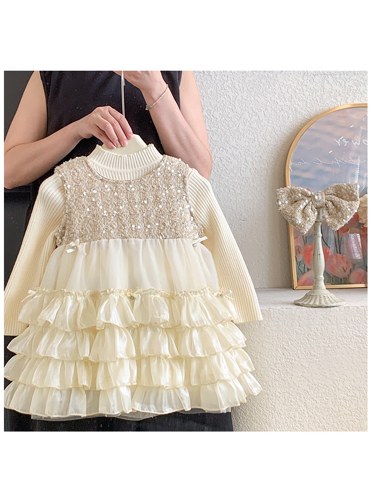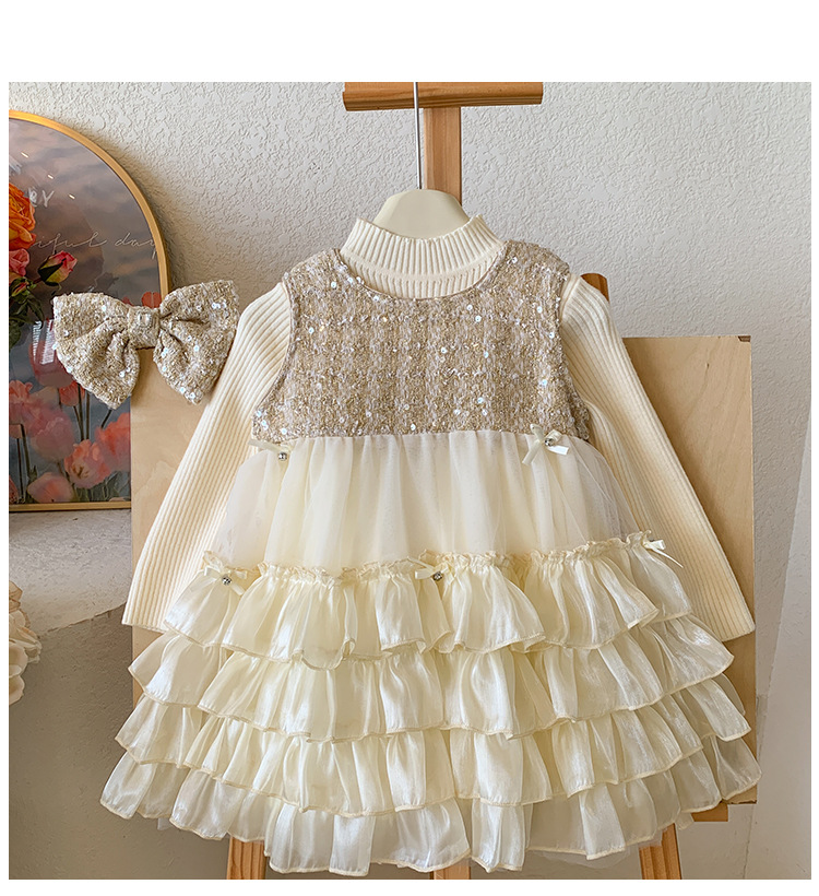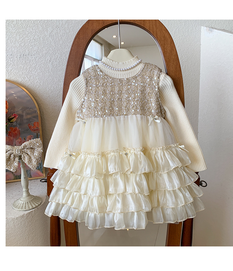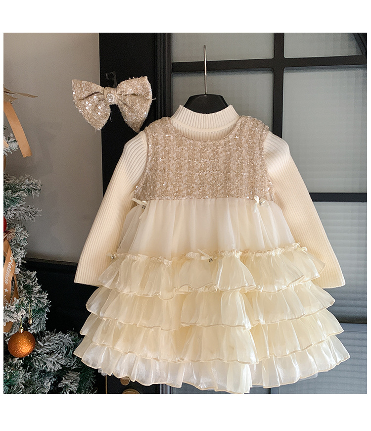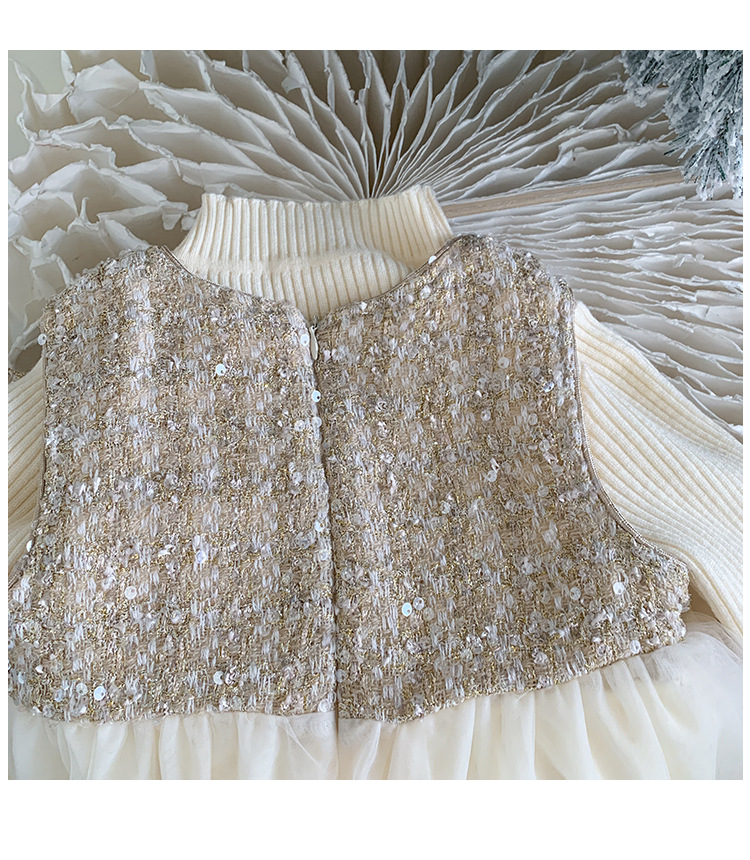 Girls autumn and winter 2025 new sleeveless sequined fleece dress without fleece knitted top two-piece set