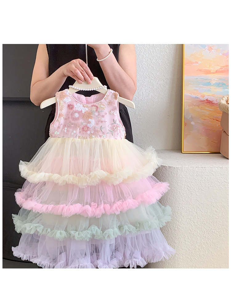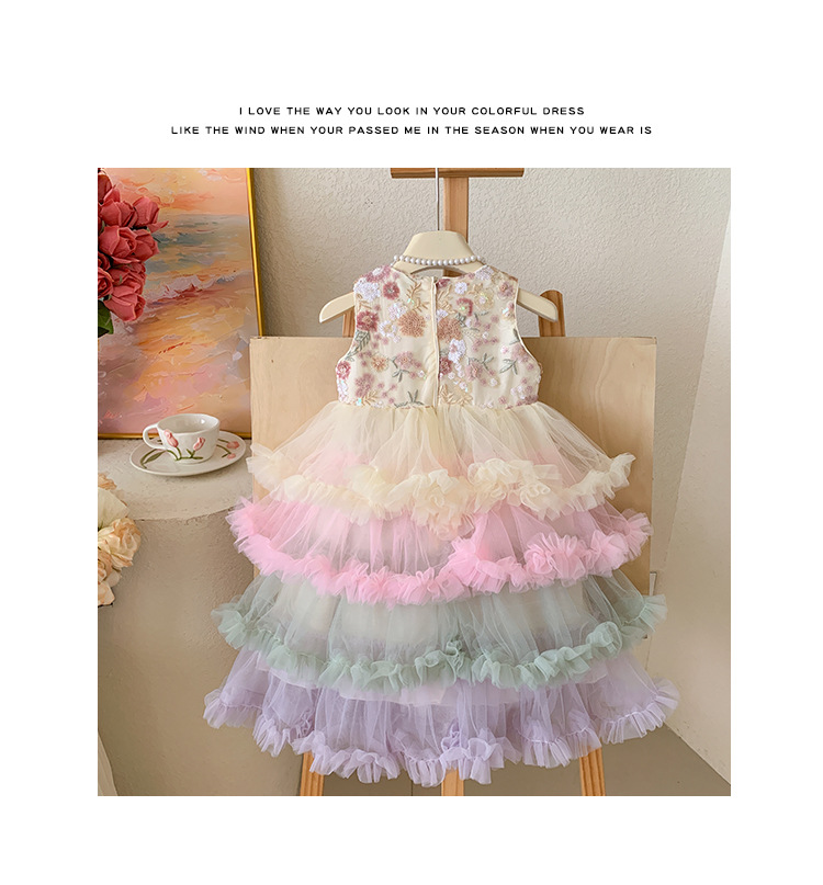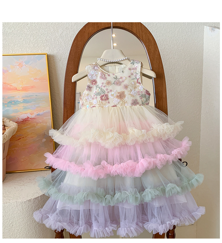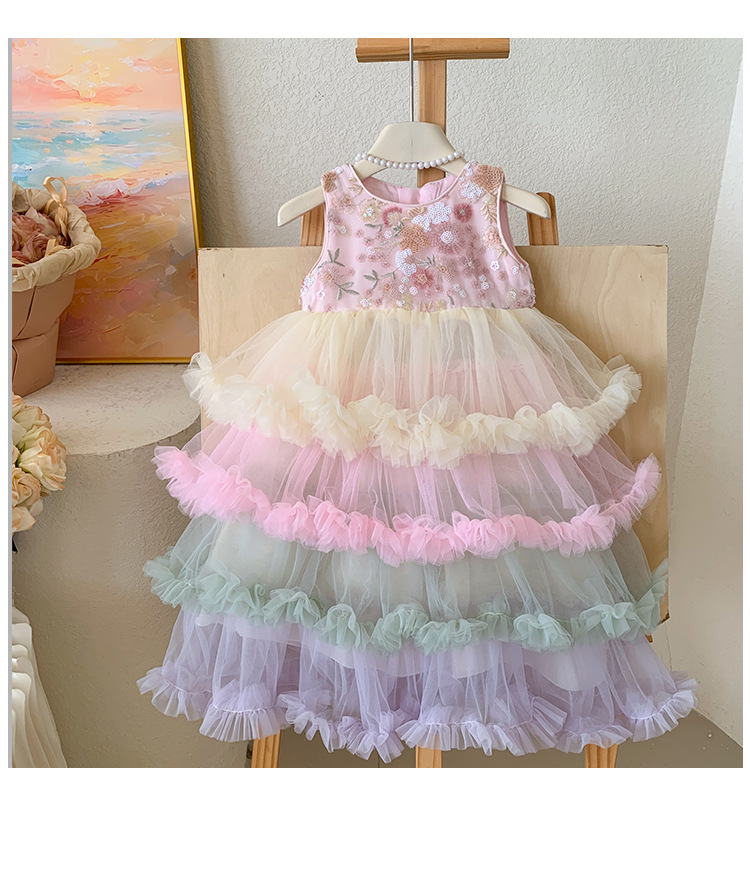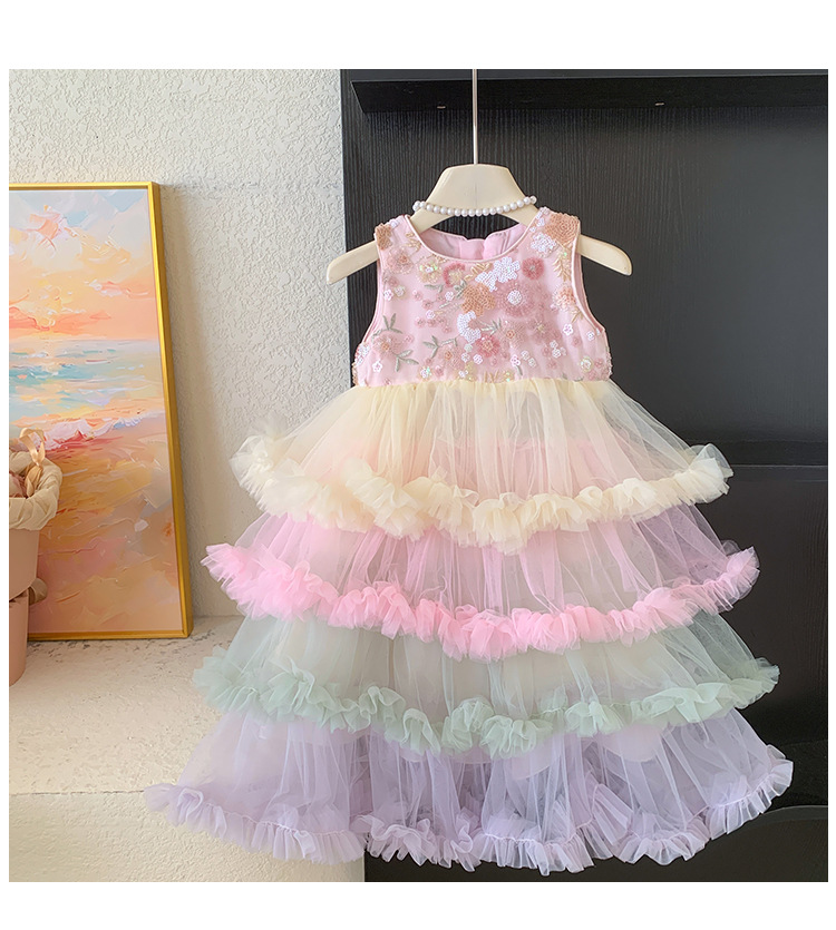 Girls vest dress 2025 summer new girls foreign mesh tutu skirt children's princess dress super fairy