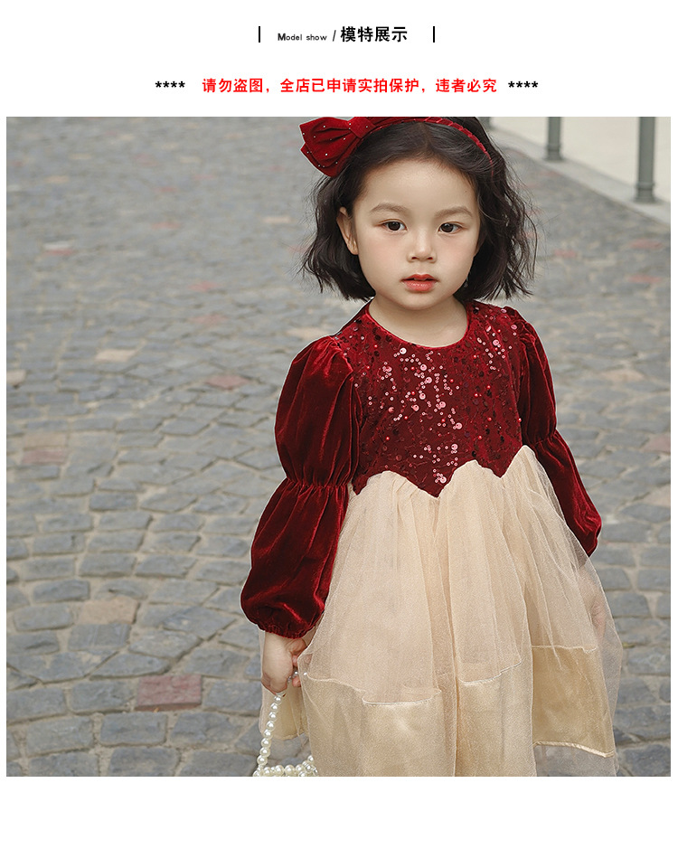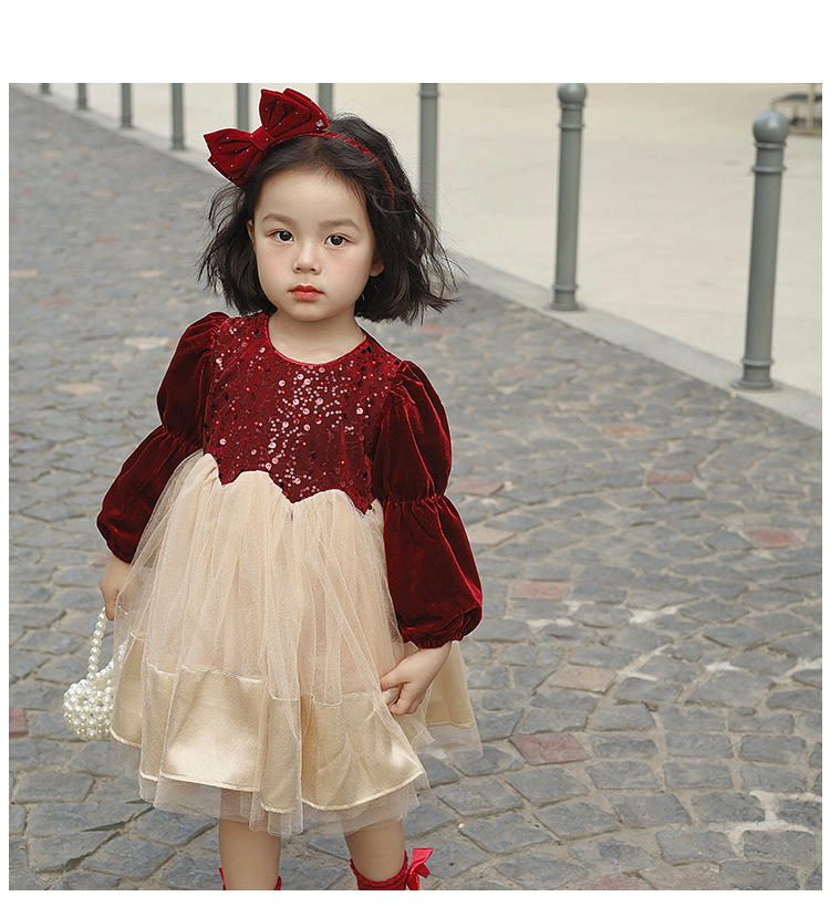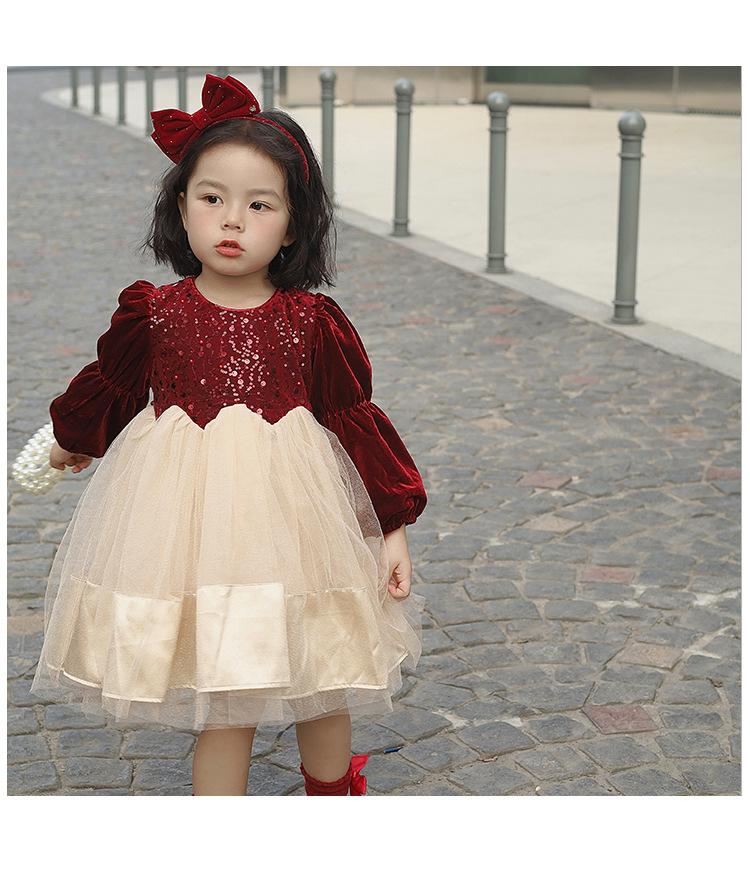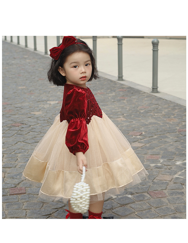 Girls dress autumn and winter 2025 new foreign style dress girls fleece thickened princess dress fluffy gauze skirt