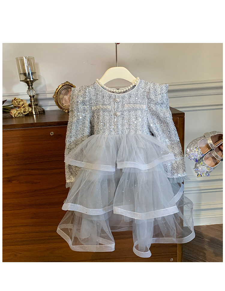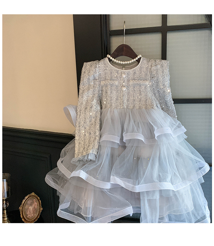 Girls dress autumn new children's fluffy cake skirt Xiaoxiangfeng birthday girl princess dress foreign style