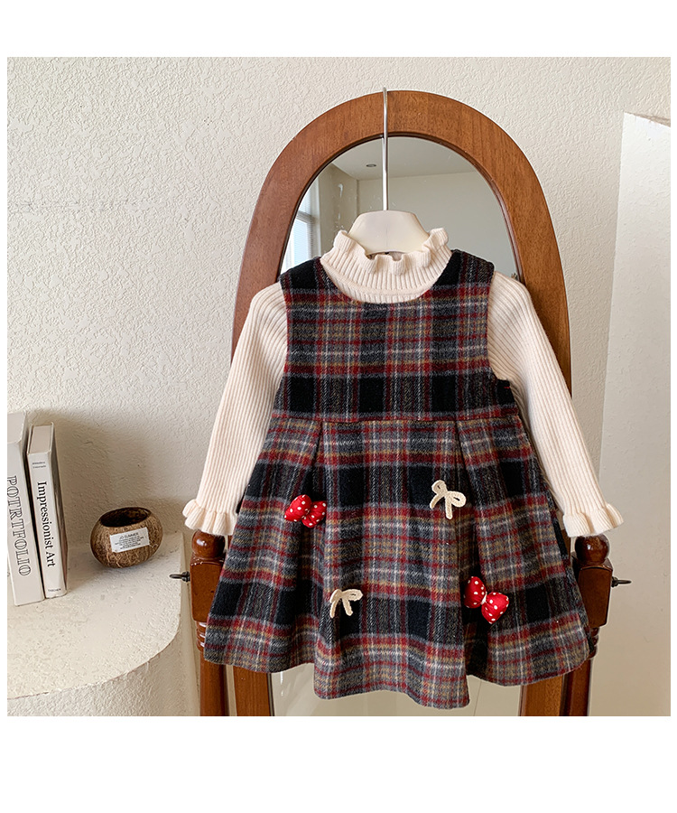Dress children's clothing girls two plaid fleece dress new little girl no fleece knitted sweater set