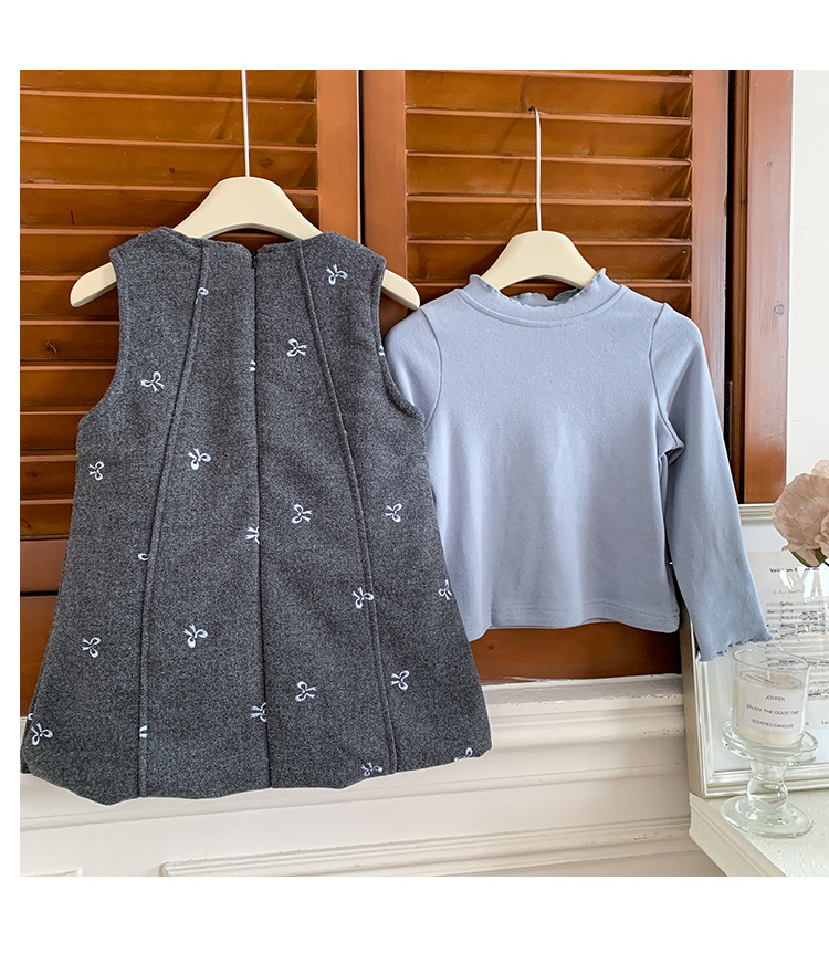 Korean version of girls' winter clothing 2025 girls' sleeveless fleece printed dress, bottom fleece top two-piece set