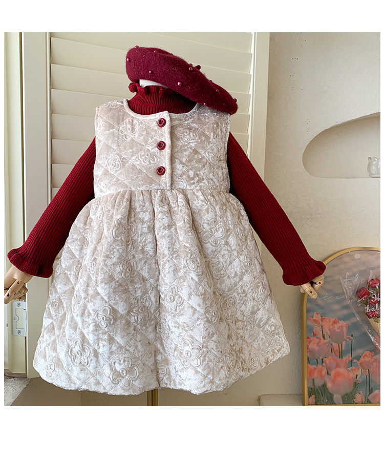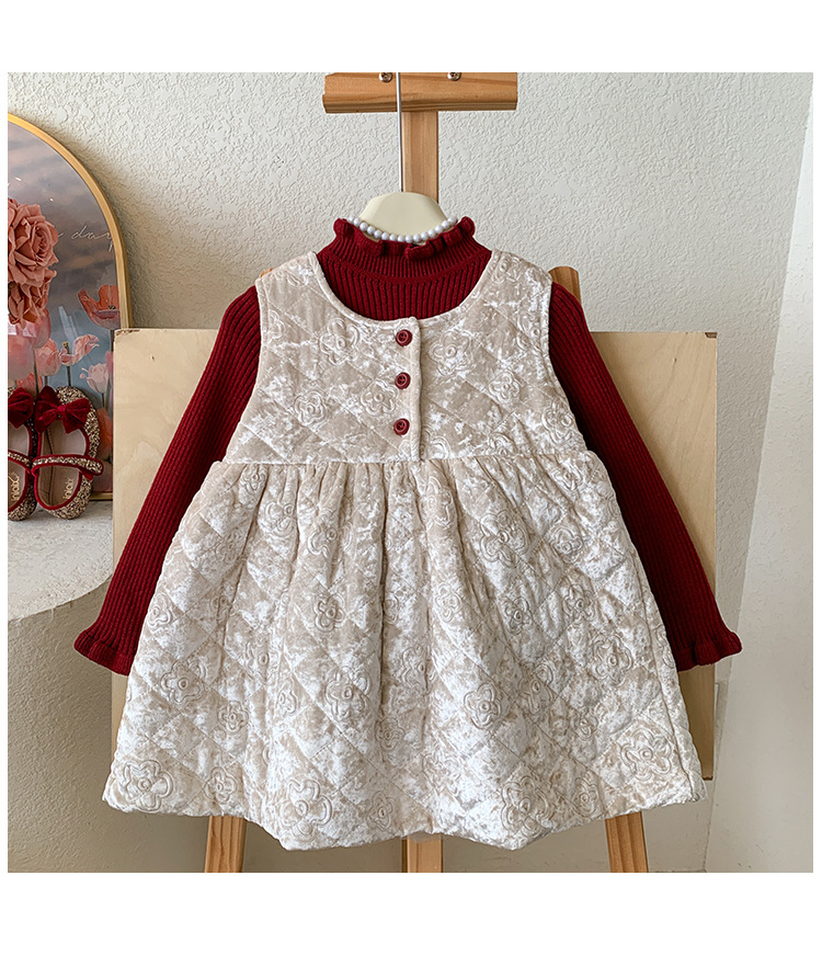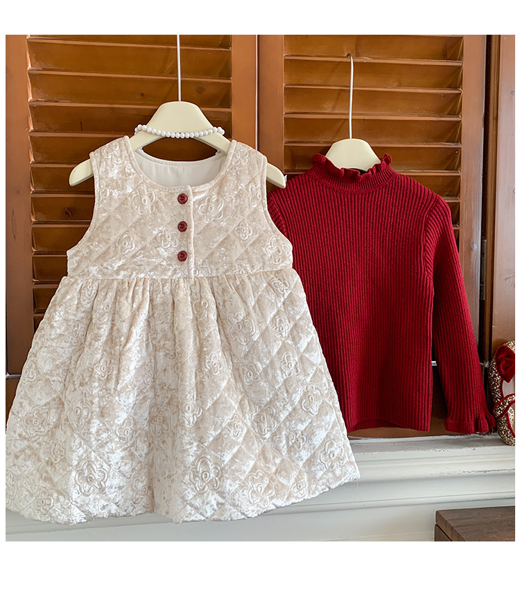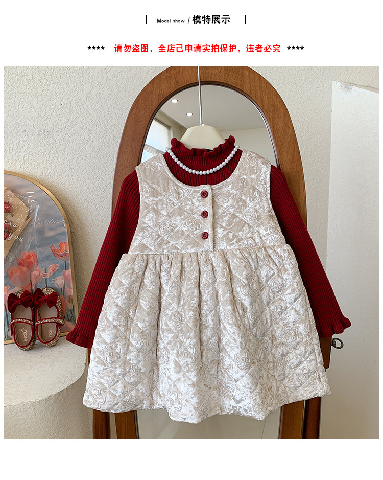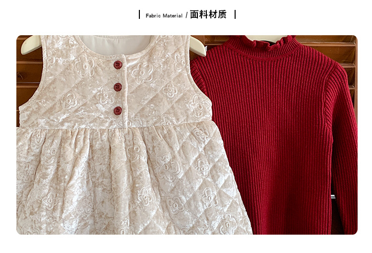 Korean version of girls' autumn and winter padded vest dress knitted top without velvet fashion foreign style two-piece set
