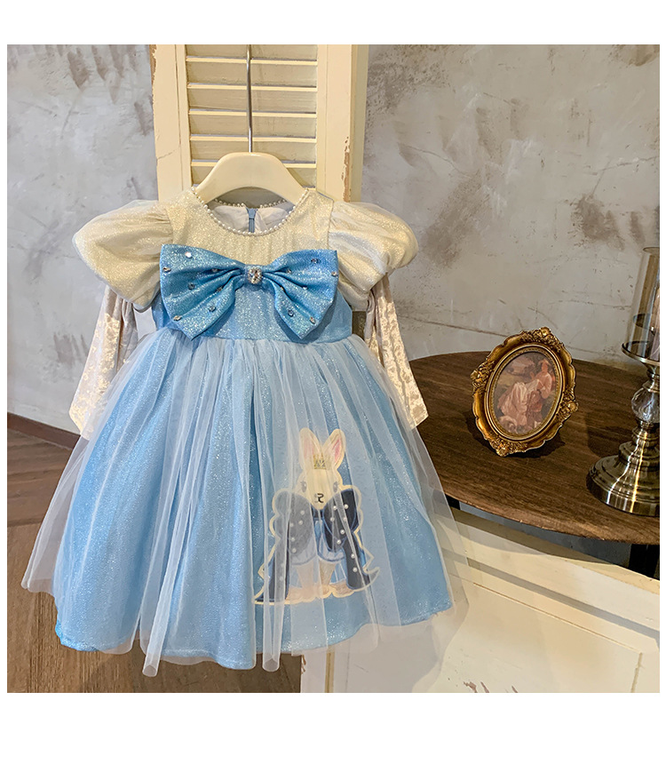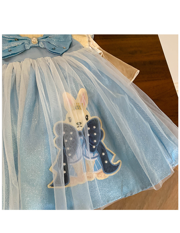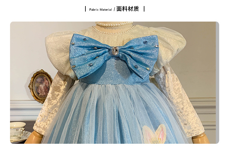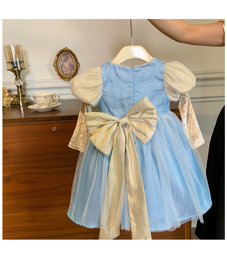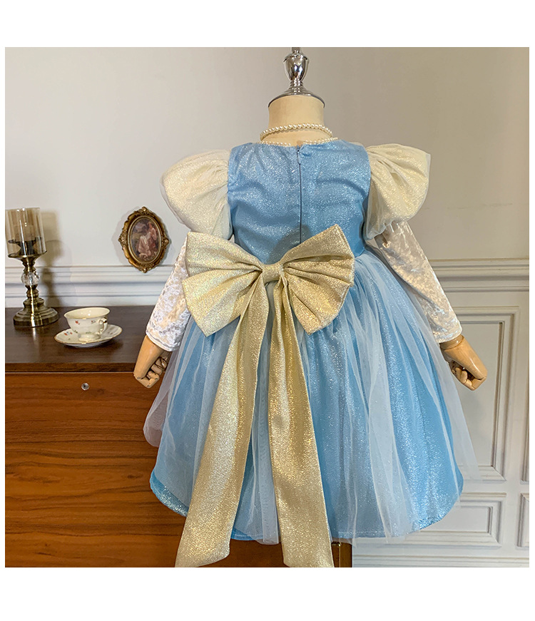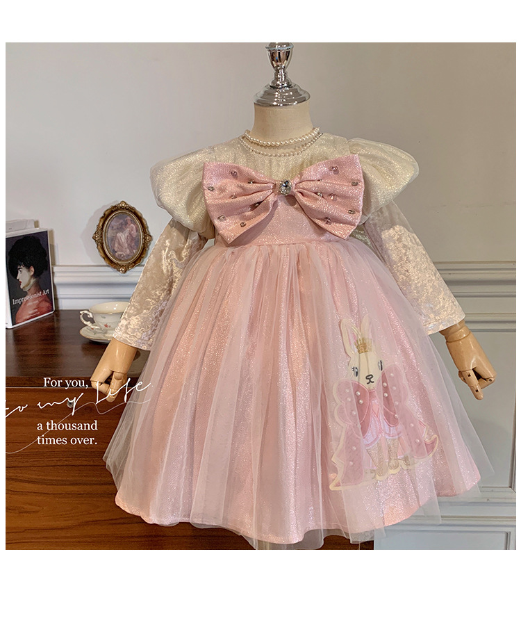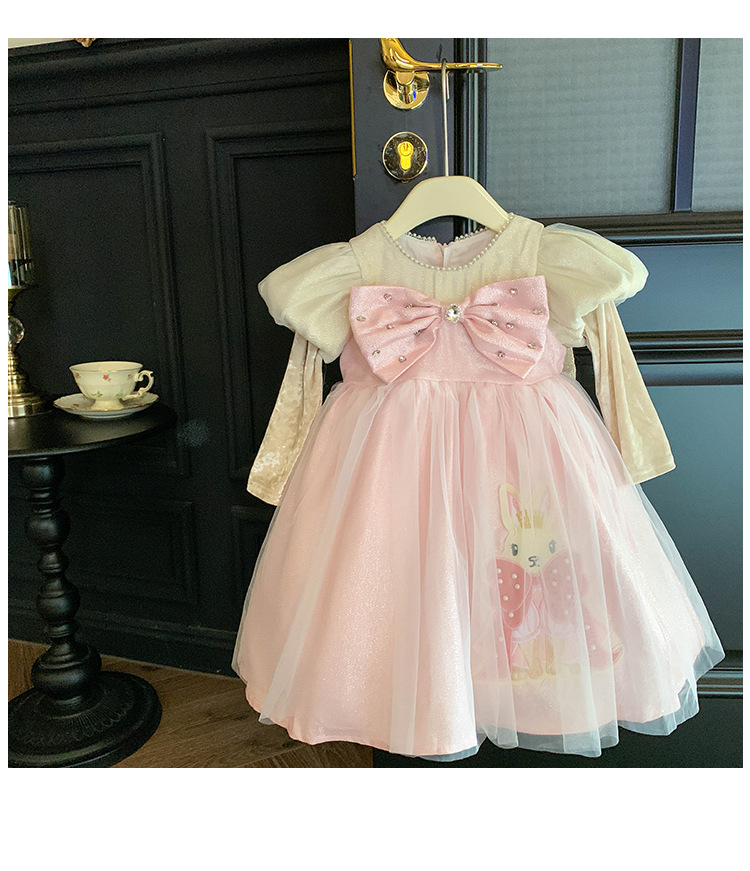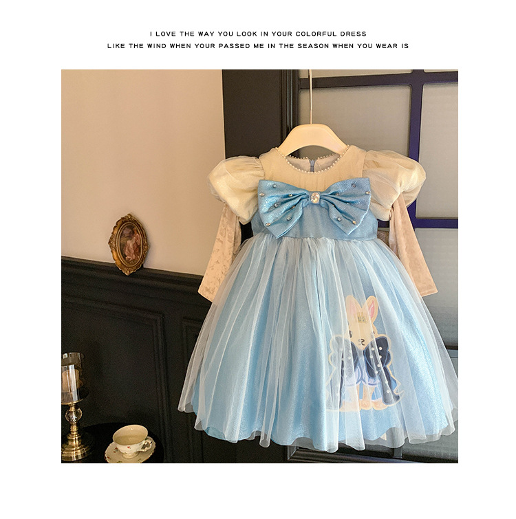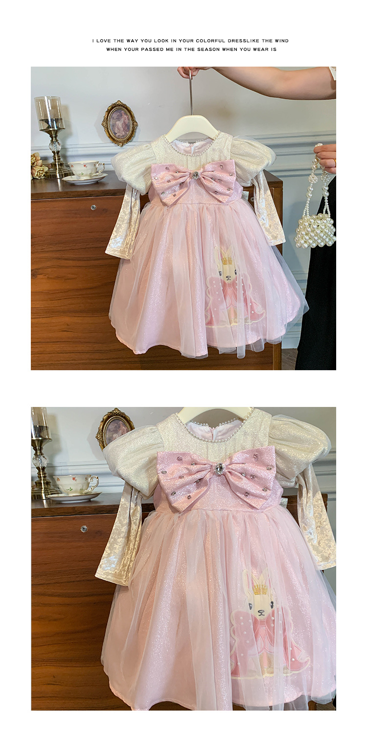 Korean version of girls' autumn bow sweet dress 2023 new children's mesh princess dress birthday dress dress dress