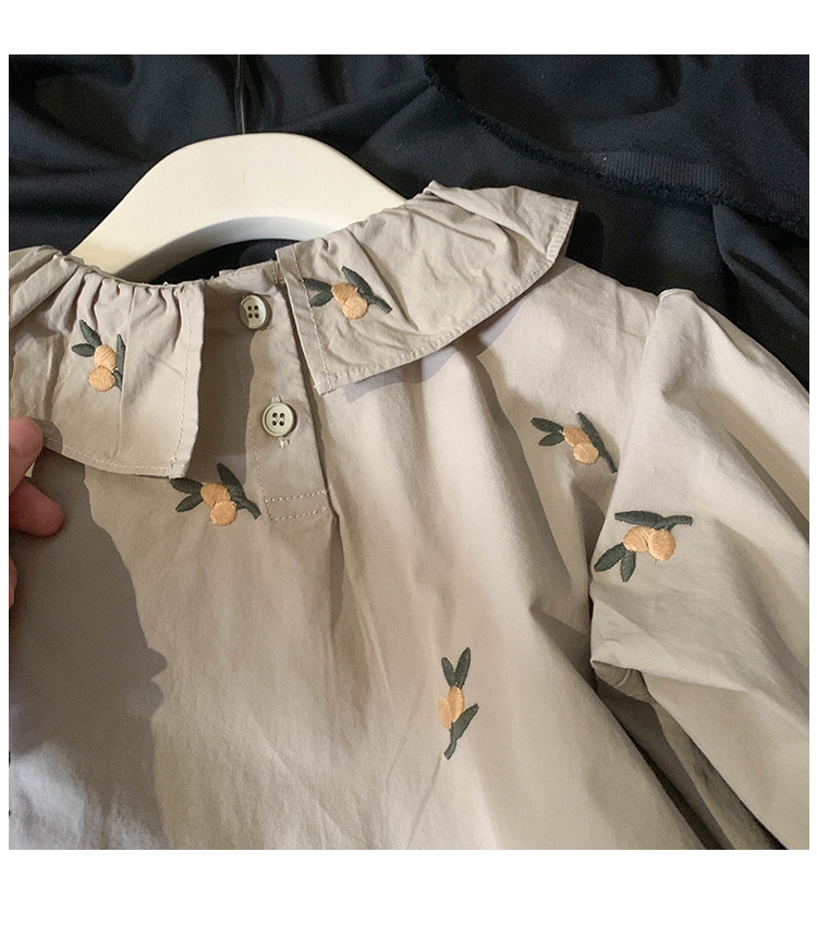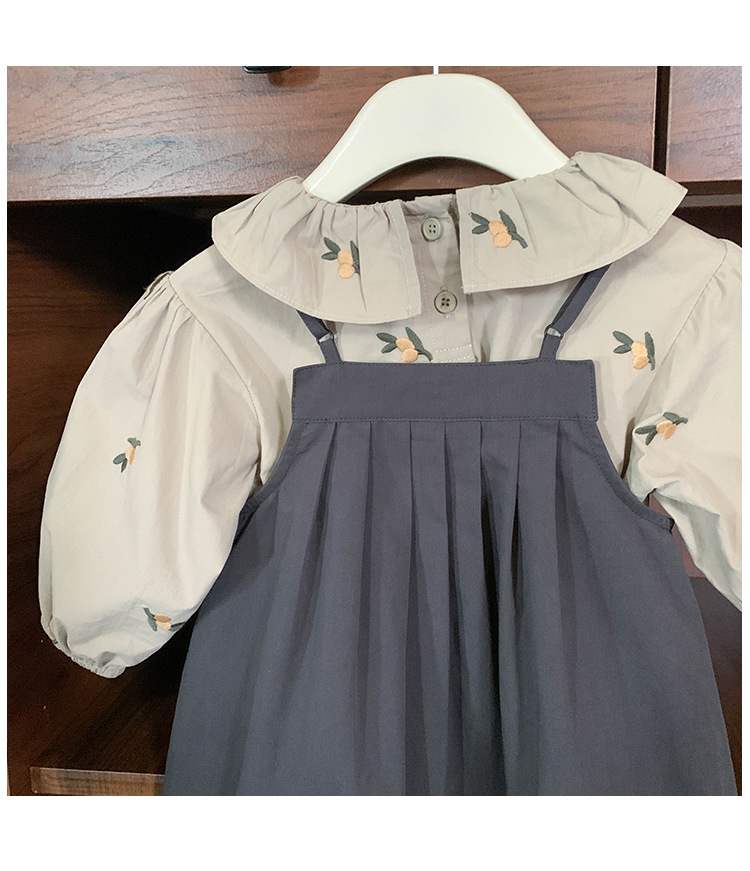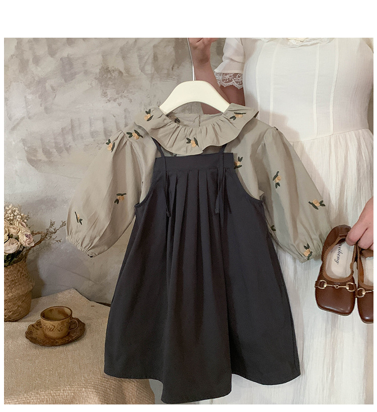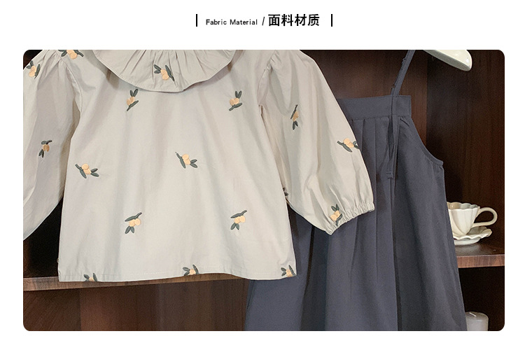 Korean version of children's clothing girls' suit 2025 spring children's foreign style retro embroidered lotus leaf collar shirt pleated strap skirt